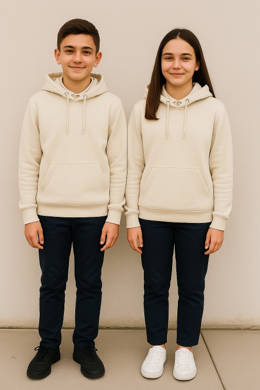 * Krem renkli, fermuarsız ve kapüşonsuz swet
